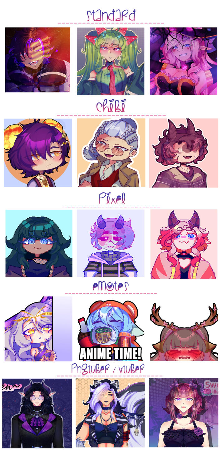 Due to the nature of my work, Refunds are Not available after purchase, Do not buy anything without contacting me first to talk through what you are wanting done, that way it's a fair price to your situation, and i can give you an Estimated Time of Delivery, you will receive the sketch as i work on it so you can personally ask me to tweak anything or fix any mistakes i make, But once the art has been started, No refunds can be given, So do not buy from me unless you have read my TOS, and made sure you know exactly what you want beforehand,as for Commercial use, if it is something made specifically for content creation (Emotes, Vtuber/Png tuber, YouTube Sprites, etc.) then you are more than welcome to use it, with the one rule that you Link to my information in the description, and proper credit as the artist,thank you for reading, have a wonderful evening my little Imps~ <3